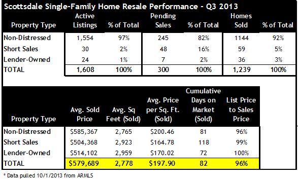 – Scottsdale Third Quarter 2013 Home Sales By Type – Foreclosure & Short Sale Data Included –